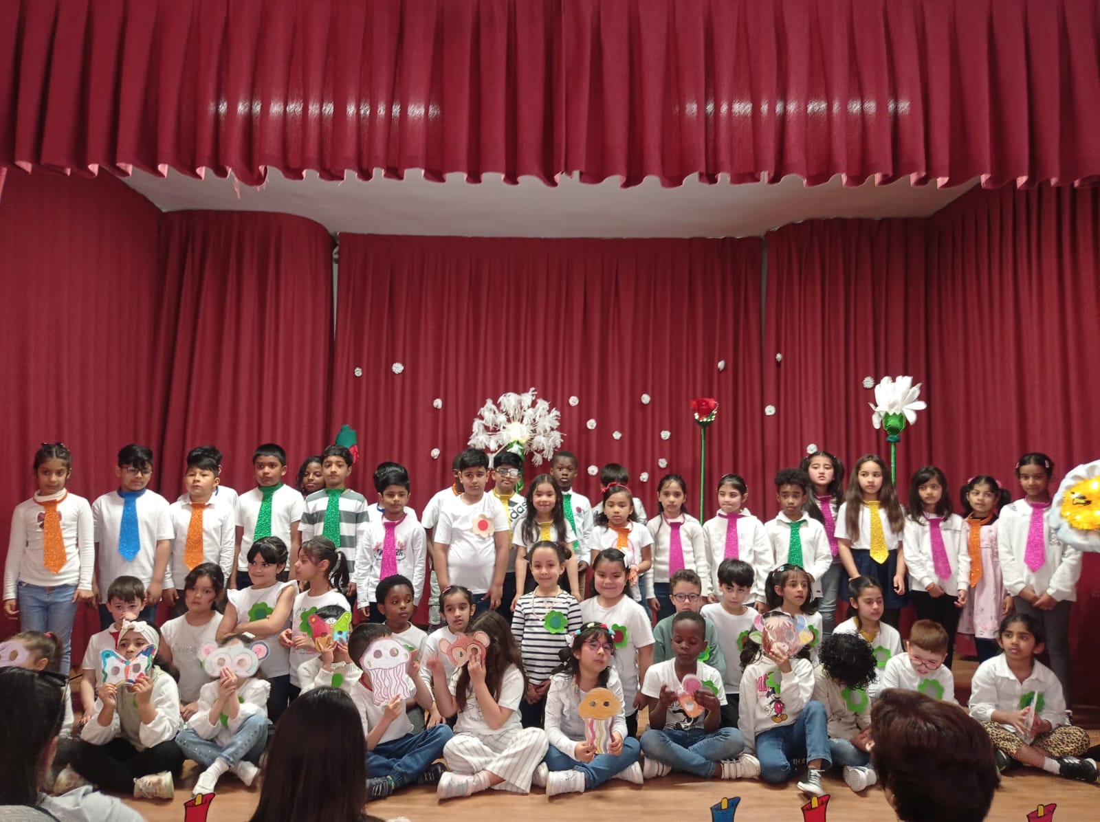 La semana pasada, los alumnos y alumnas de 1º y 2º de Primaria, nos ofrecieron un gran recital de Gloria Fuertes, con motivo del día del libro. Fue una gran actuación. Los niños y niñas del Primer ciclo del cole, estuvieron geniales, con sus tutores y su profe de Inglés. El resto del cole también colaboró en el evento, los mayores hicieron las invitaciones para las familias y para nuestros amigos de AFA Rioja, que nos acompañaron y aplaudieron con gran entusiasmo. Otro grupo, acompañado por dos maestras, entregó las invitaciones en el local de AFA. Los más pequeños elaboraron unos aviones que regalaron a nuestros mayores con mucho cariño, nuestras profes hicieron de anfitrionas, otras decoraron el escenario, otro grupo de alumnos y alumnas hicieron unos bonitos carteles, que lucieron en la sede de AFA